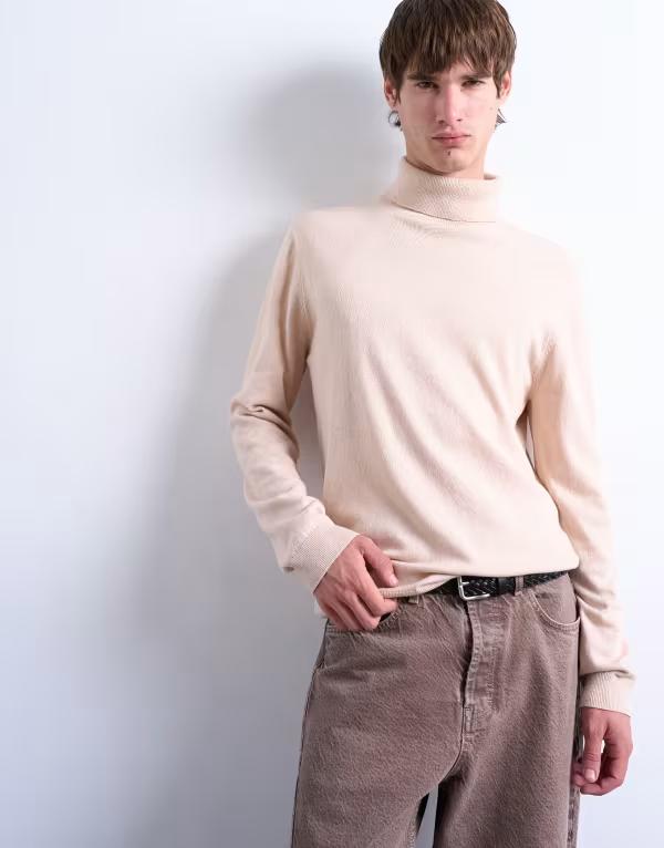 トップマン メンズ アウター ニット・セーター タートルネック ウール セーター Topman essential turtleneck sweater with wool in stone STONE ストーン