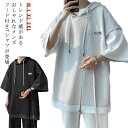 パーカー メンズ 半袖 春 夏 フード付き カットソー Tシャツ ブランド トップス 人気 涼感 涼しい おしゃれ セール オーバーサイズ 大きいサイズも充実 半袖トップス特集