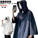 夏服 フード付き テーシャツ 五分袖 tシャツ パーカー 無地 半袖 トップス プルオーバー 夏 パーカーtシャツ 春 メンズ フーディー Tシャツ ドロップショルダー リラックス ゆったり ビッグtシャツ フード 薄手 シンプル カジュアル ストリート tシャツ