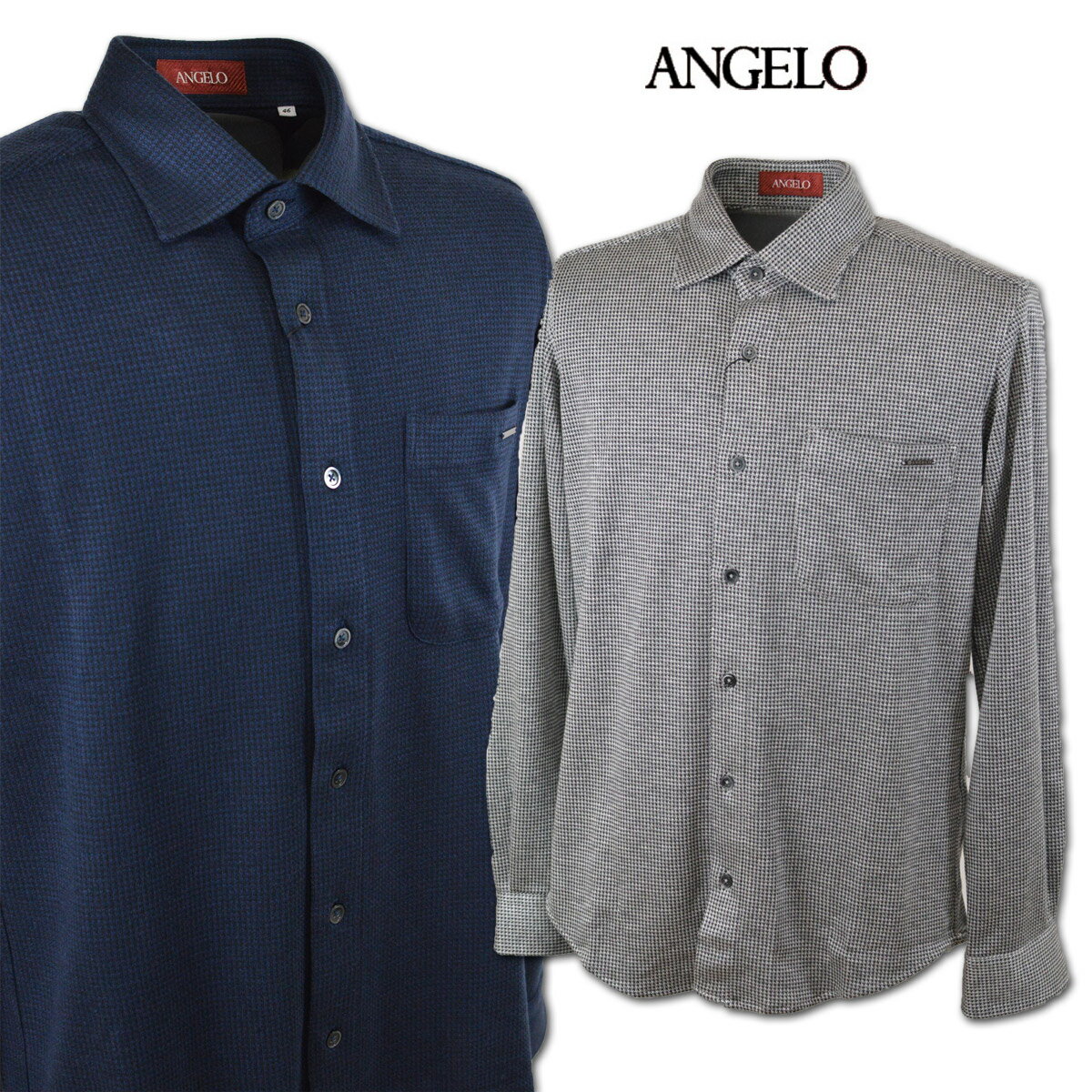 アンジェロ 長袖シャツ メンズ 秋冬用 紺 グレー M L LL 25-1003-04【 あす楽 送料無料 】 [ ANGELO 長袖 シャツ 綿 コットン 大きいサイズ ゴルフ かっこいい おしゃれ プレゼント ギフト セール アウトレット アンジェロジャパン ]