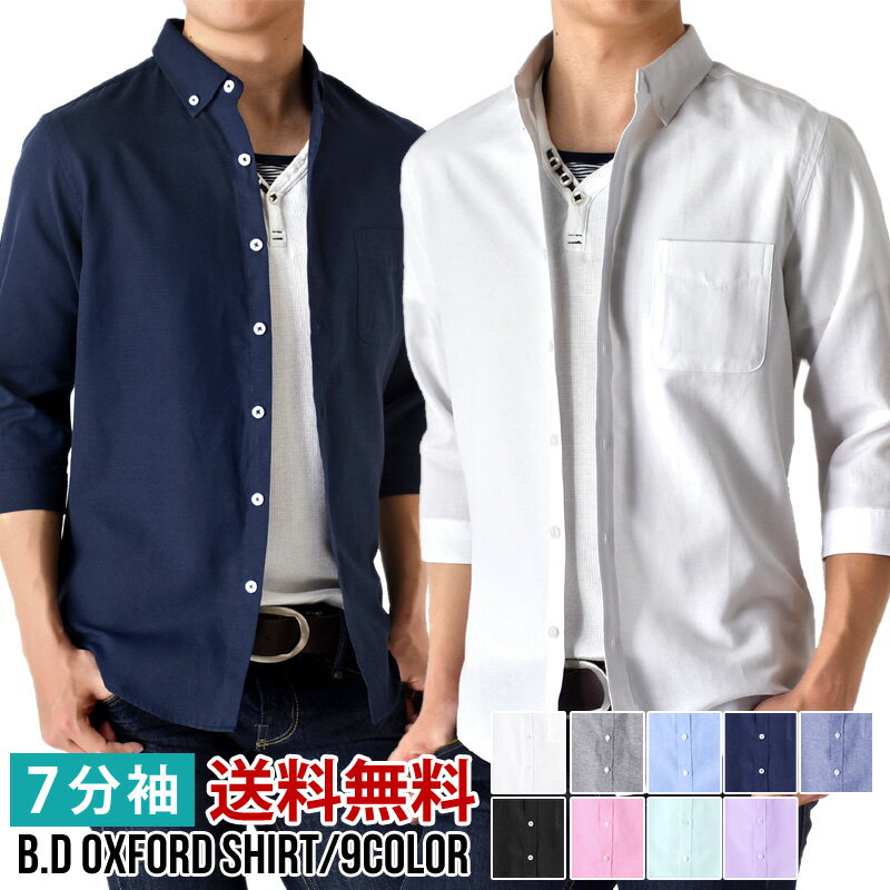 オックスフォードシャツ メンズ 7分袖 ボタンダウン シャツ カジュアル 春 夏 秋 涼しい トップス シャツコーデ【メール便送料無料C《M1.5》】【1-S1A】