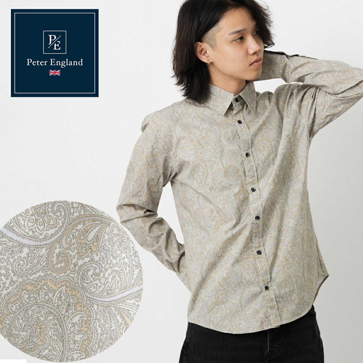 ピーターイングランド 英国老舗ブランド メンズシャツ 日本縫製 ペイズリープリント グレー コットン 長袖 メンズ UKデザイン プレゼント ギフト ビジネス カジュアル モッズ フォーマル