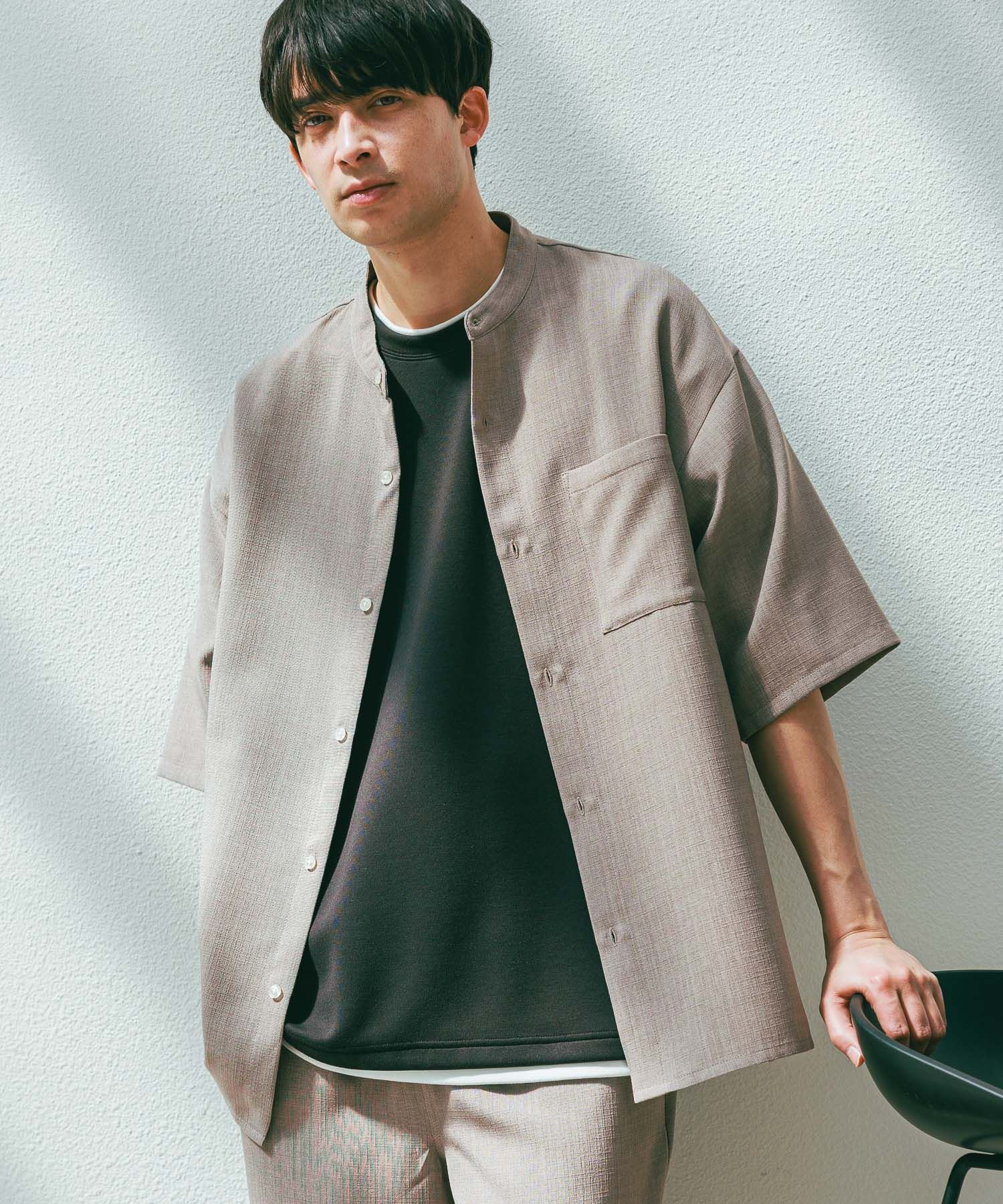 BAND COLLAR SHORT SLEEVES SHIRT バンドカラー半袖シャツ - 知的な印象のバンドカラー半袖シャツ - 世界3大高品質綿のひとつ、エジプトの“ギザ綿”を使用し、極細の100番双糸を 1インチ間に160本の密度で織り上げたストライプ地を使用したバンドカラー半袖シャツです。 - ギザ綿とは? - エジプトで栽培される超長繊維綿で、ナイル川地域のギザ地方に由来した名称になります。 高品質な綿の中でも繊維長が長く、さらに全てがオーガニックコットンであるために、 希少性が高く、しなやかな繊維長による上品な光沢と肌ざわりの良さが特徴になります。 - 良質な素材のみを厳選してつくりあげた、美しい貝ボタン - 日本一のボタン生産地である奈良県北部の中央に位置します磯城郡川西町。 この地で生産される日本屈指の貝ボタンメーカーとして名高い “トモイ”の高瀬貝ボタンを使用しております。