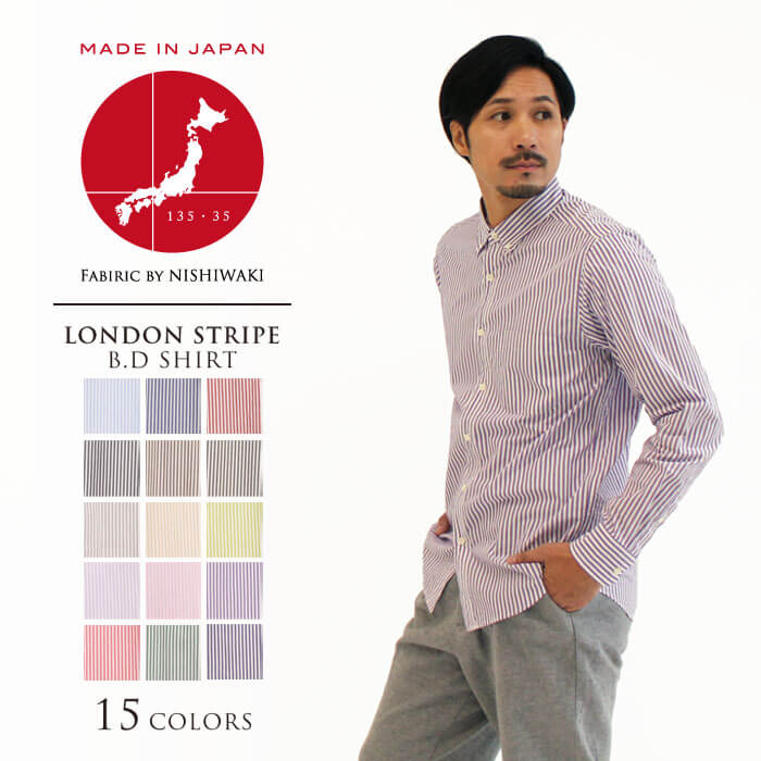 カジュアルシャツ メンズ 日本製 長袖 綿100% ボタンダウン 春夏 ロンドンストライプ 播州織 高級 おしゃれ ブランド 大きいサイズ コットン 青 黒 緑 赤 紫 紺 ビジネス きれい 柄シャツ シンプル 男性 紳士 プレゼント ギフト 先染め M L LL 送料無料