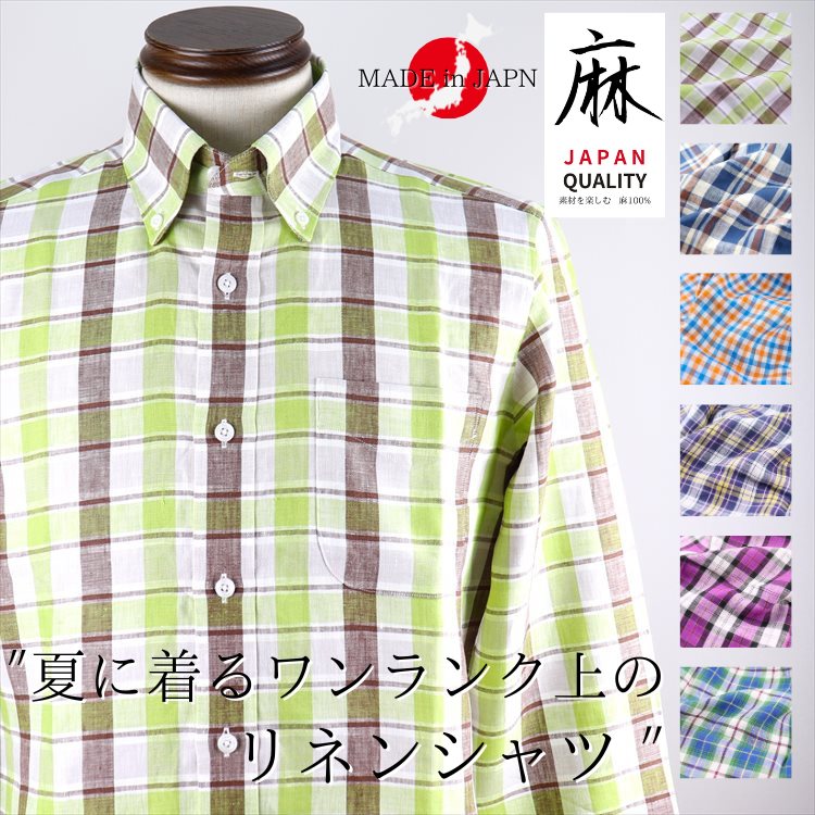 【アウトレット】リネンシャツ メンズ 麻シャツ 長袖 紳士 シャツ カジュアルシャツ ボタンダウン チェック柄 麻 リネン 天然素材 父の日 誕生日 プレゼント ギフト メンズファッション シニア Mサイズ Lサイズ 30代 40代 50代 60代 70代 春 夏 日本製