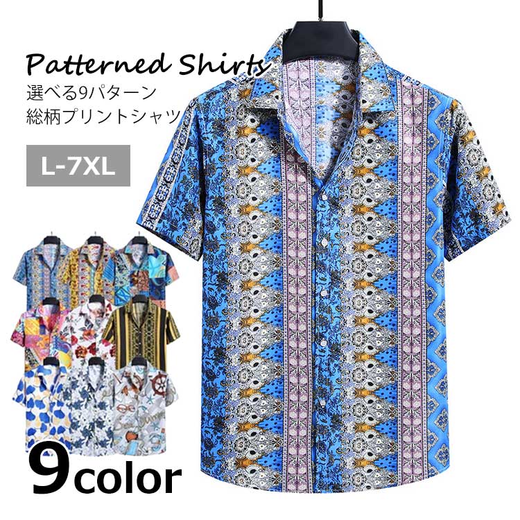 【夏物処分セール】アラベスク柄 ド派手シャツ カジュアルシャツ メンズ 春夏 ボタニカル マルチカラー 総柄 半袖 全9色 L-7XL