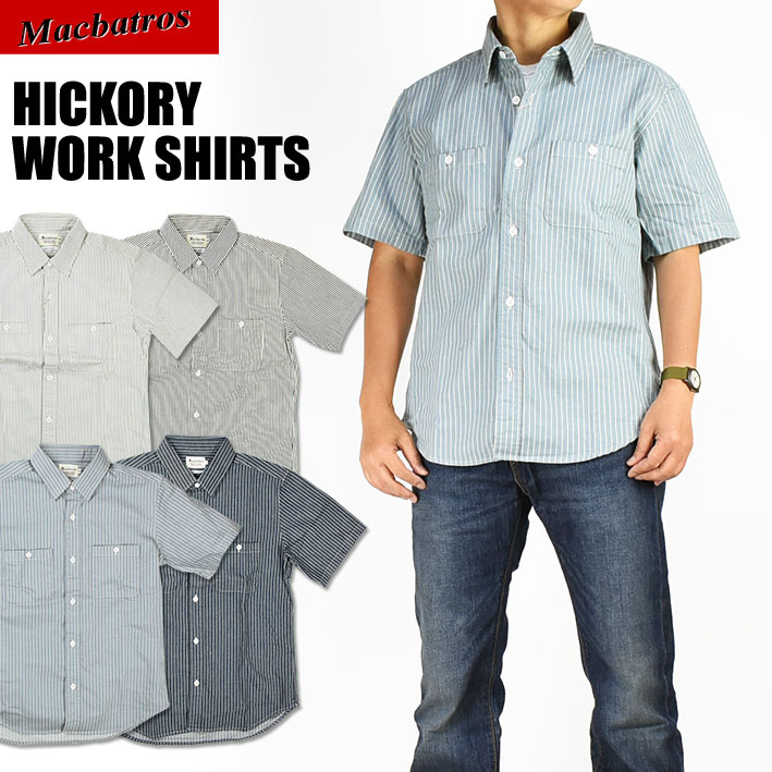Macbatros マクバトロス ヒッコリーストライプ 半袖ワークシャツ 半袖シャツ メンズ 日本製 105-02