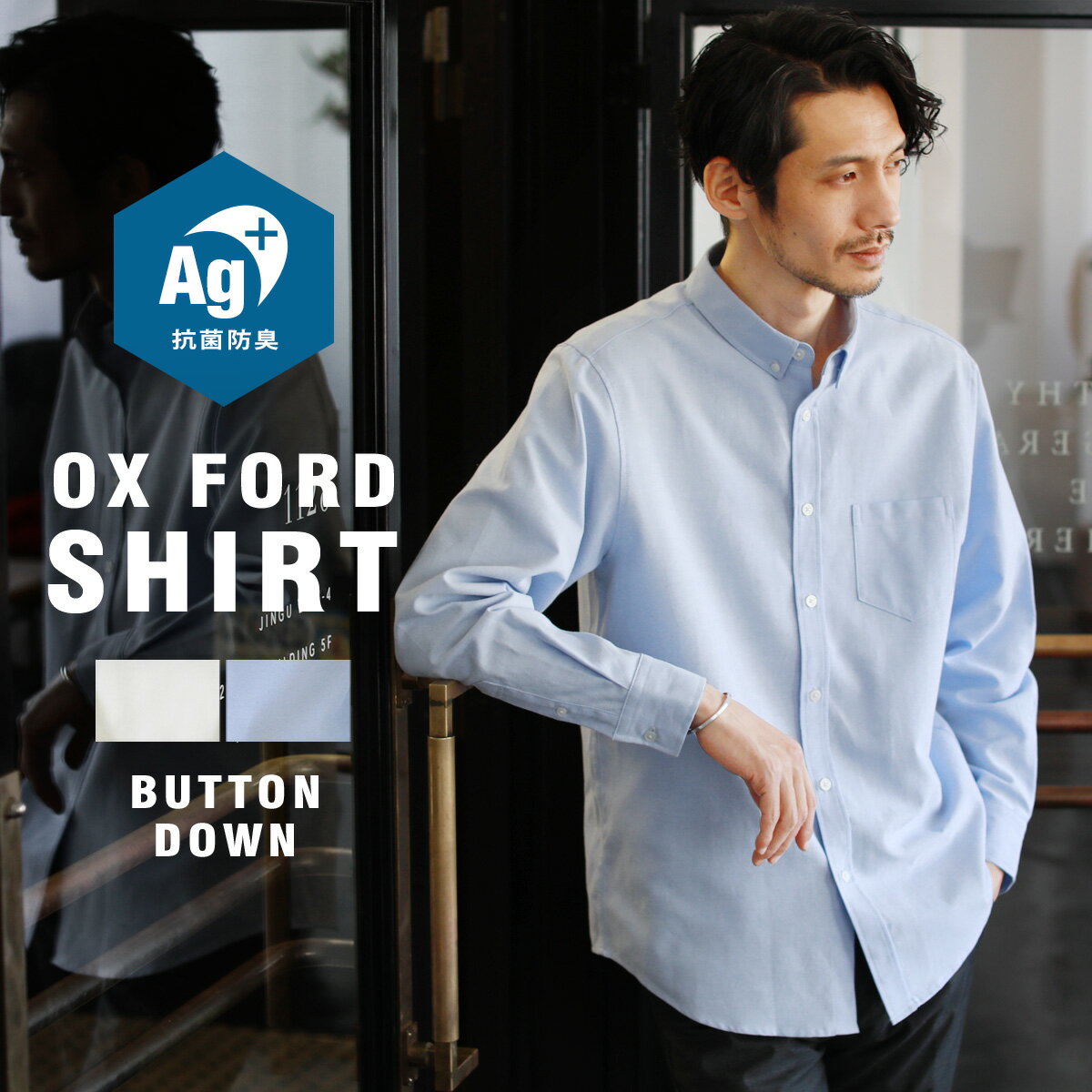 シャツ メンズ カジュアルシャツ 抗菌 防臭 メンズファッション オックスフォードシャツ ボタンダウンシャツ 春 春服 長袖 綿 オックス ボタンダウン ポケット ホワイト サックス ブルー M L