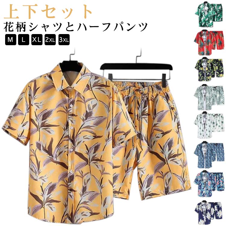 ハーフパンツ 夏服 カジュアルシャツ 男性 半袖シャツ セットアップ 短パン ショートパンツ 上下セット メンズ 花柄 総柄 アロハシャツ 花柄シャツ アロハシャツ シャツ ハワイ風シャツ ビーチシャツ 2点セット リゾート 海辺 サーフ系 通気性