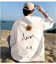 ロゴ Tシャツ 7色 半袖 トップス カットソー 花柄 フラワー ひまわり カラフル 大きいサイズ ビッグ ダンス 衣装 ヒップホップ HIPHOP レディース メンズ ガールズ ストリート 個性的 奇抜 お揃い バックプリント 白 黒 オレンジ ピンク 青 緑