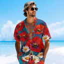 シャツ メンズ 薄手 通気性 ストレッチ ウォッシャブル 春夏 ハワイ ビーチ リゾート カジュアル ストリート ゆったり 開襟シャツ 半袖 総柄 プリント ポリエステル