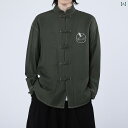 シャツ メンズ 春夏 新チャイナ風 デニム リネン 長袖 刺繍 レトロ ヴィンテージ風 ゆったり 大きいサイズ スタンドカラー カジュアル 普段使い ウォッシャブル