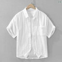 メンズ シャツ 無地 爽やか きれいめ 夏 リネン 半袖 シャツ メンズ ゆったり カジュアル 通気性 コットン リネン 糸 和風 シンプル トップス 軽量