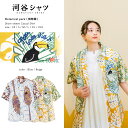 河谷シャツ Botanical park (植物園) カジュアル 半袖シャツ / k232-1211 / 全2色 ブルー ベージュ 全6サイズ XS S M L XL XXL シャツ 半袖 メンズ レディース 男女兼用 ユニセックス / リーフ リーフ柄 ボタニカル 刺繍 パッチワーク カジュアルシャツ
