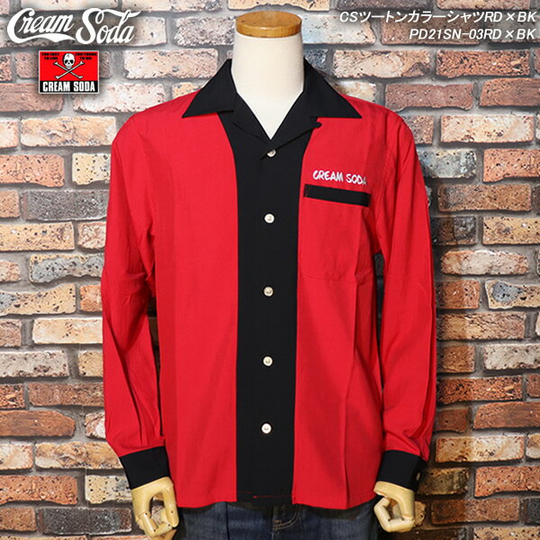 CREAM SODAクリームソーダ◆CSツートンカラーシャツRD×BK◆◆赤◆PD21SN-03RD×BK