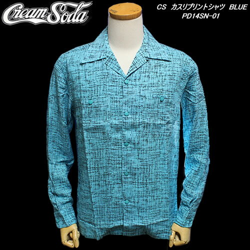 CREAM SODAクリームソーダ◆CS カスリプリントシャツ◆◆ブルー◆PD14SN-01BLUE
