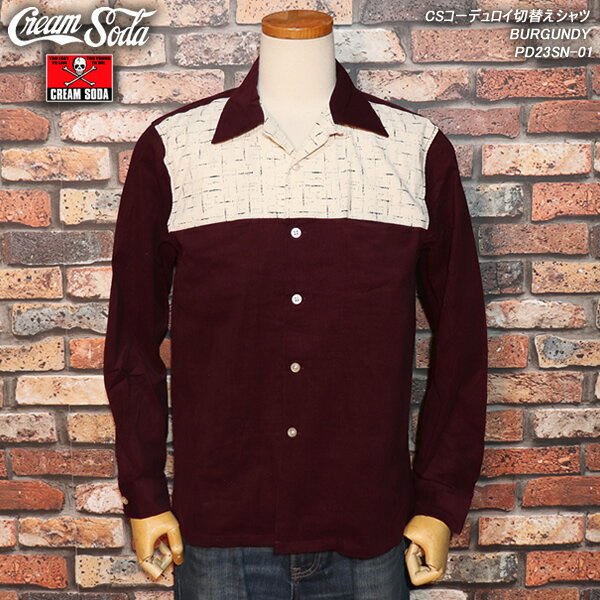 CREAM SODA クリームソーダ CSコーデュロイ切替えシャツ BURGUNDY PD23SN-01