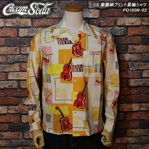 CREAM SODAクリームソーダ◆CS 楽器柄プリント長袖シャツ◆PD19SN-03