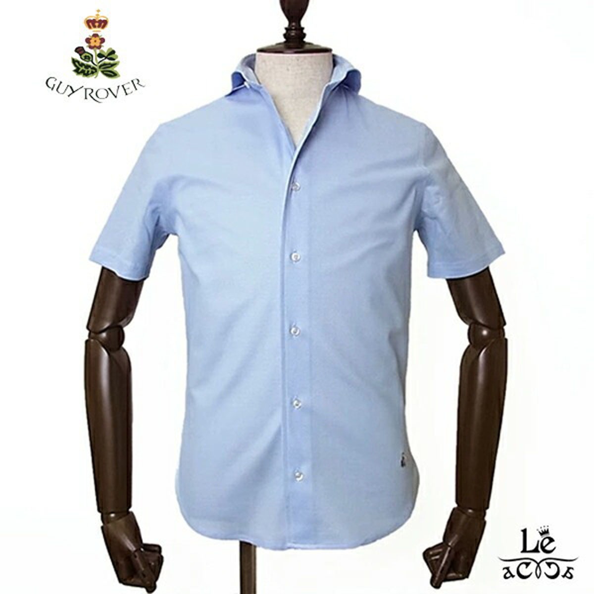 GUY ROVER ギローバー 半袖 シャツ オニカノコ 鹿の子 無地 サックス ブルー 水色 コットン カッタウェイ セミワイドカラー メンズ オフィス ビジネス イタリア ブランド 国内正規品 22000【送料無料】