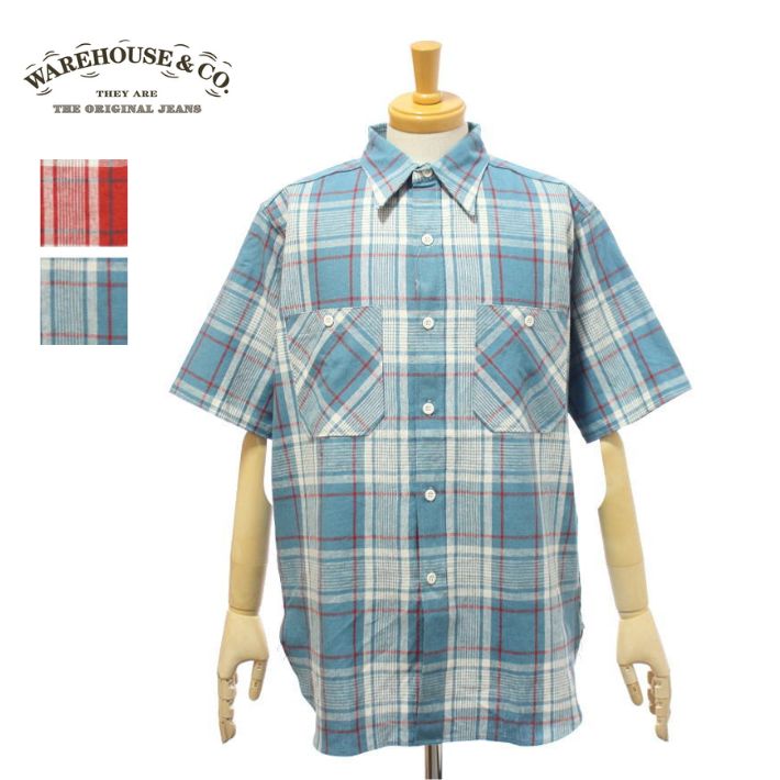 ウエアハウス Lot.3056 B柄(大チェック) 半袖 ワークシャツ ノンウォッシュ メンズ WAREHOUSE SHORT SLEEVE CHECK WORK SHIRTS