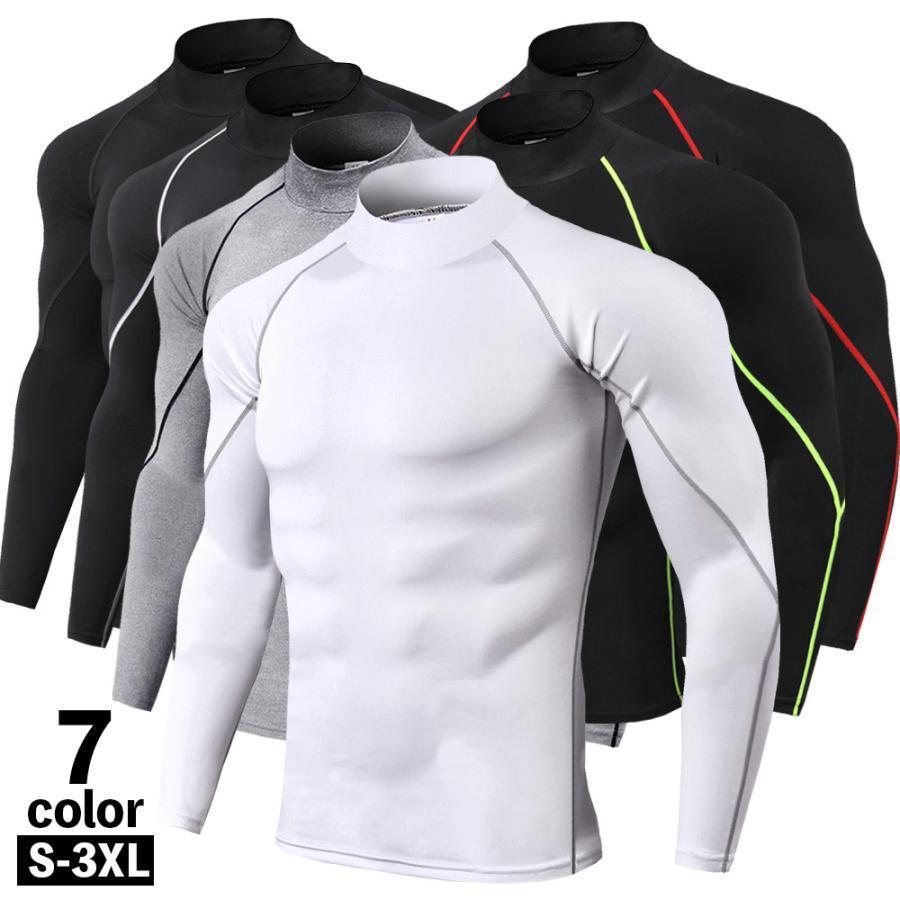 スポーツウェア トップス メンズ 長袖シャツ インナーシャツ スポーツシャツ ハイネック アンダーウェア ライン スリム フィット トレーニングウエア