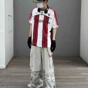 中指を立てた猫のキャラクターが人気の、独自の世界観を展開するスケーター・ブランドRIPNDIP(リップンディップ)より新入荷! サッカージャージをモチーフとしたシャツが登場! こちら数量限定につき、ご注文はお早めに! サイズ着丈身幅袖丈 L735426 XL765627