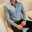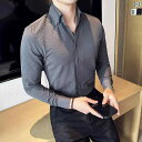 メンズ 夏 シャツ トップス 柔らかく アイロン 不要 通気性 優れた シア サッカー ストライプ ビッグ カラー ハイエンド スリムフィット 用 薄手 長袖