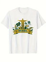 ブラジルにインスパイアされたプリントをフロントにあしらった200gのコットン製Tシャツ。リオデジャネイロのキリスト像がゴールドカラーで描かれ、その周囲にはブラジル国旗、サッカーボール、ヤシの木が描かれ、その下にはゴールドカラーのバナーがあしらわれている。