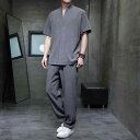 セットアップ メンズ 接触冷感 半袖 サッカー生地 ゆったり ロングパンツ 夏用 新中国風 禅テイスト リラックス カジュアル 上質 上下セット