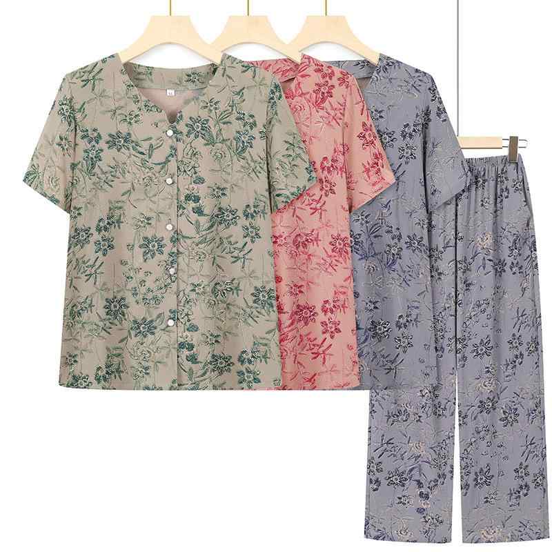 セットアップ レディース シニア 夏用 薄手 半袖 ゆったり カーディガン 花柄 九分丈パンツ ツーピース 60代 70代 高齢者向け 綿ポリエステル カジュアル 普段着