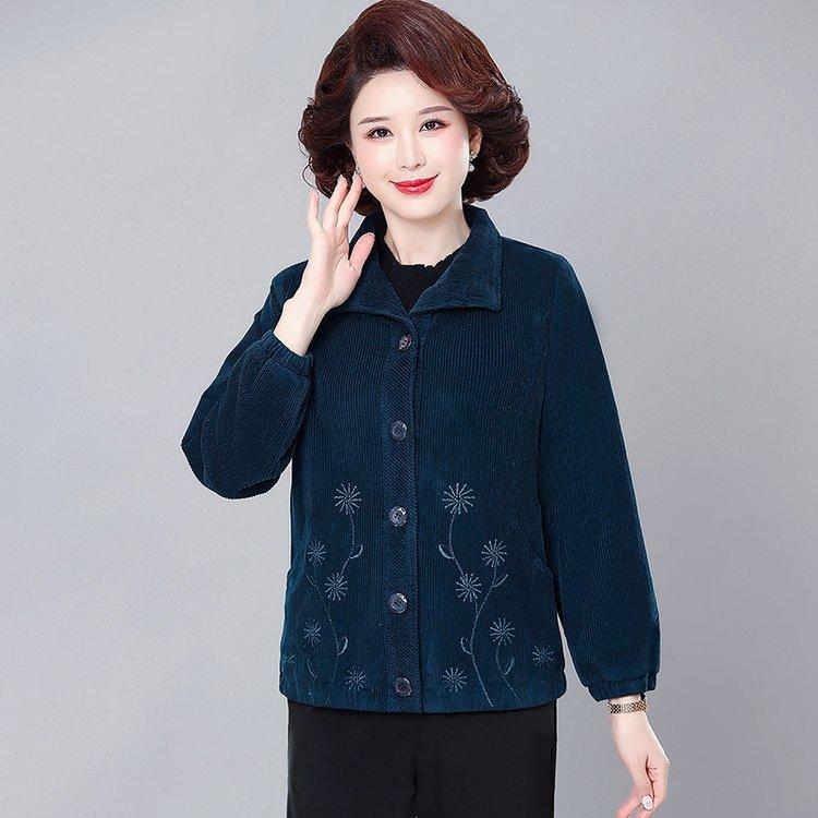 ジャケット レディース ミセス シニア 中高年向け コーデュロイ コットン 春秋 ゆったり ショート丈 襟付き ポケット付き カジュアル ブルゾン アウター