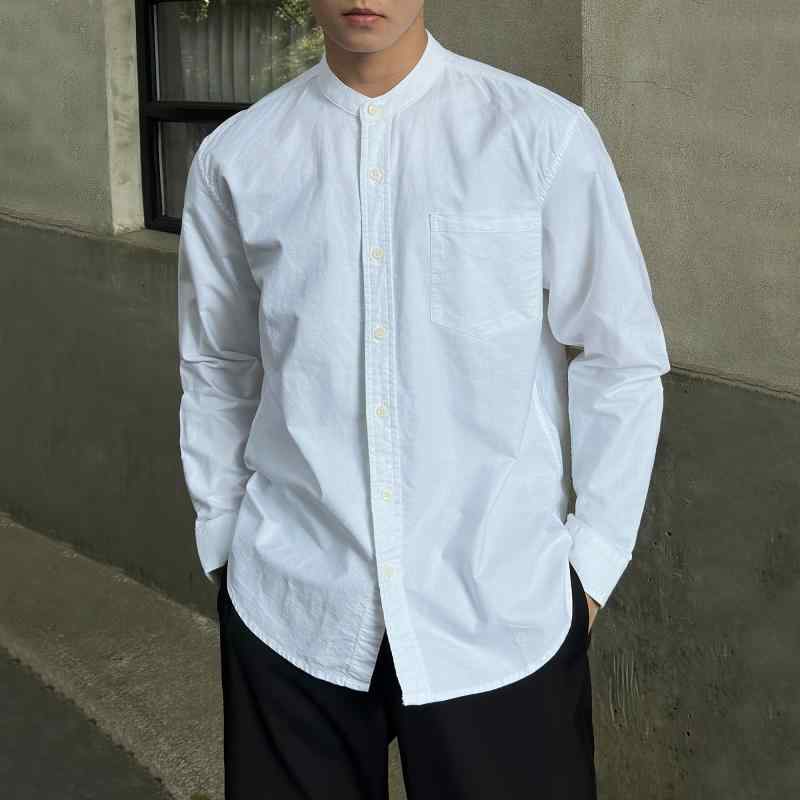 秋冬 コーデ メンズ 服 シンプル ファッション オシャレ 大人 かっこいい 大きいサイズ ストリート 紳士服 ハイエンド スタンドカラー 白 長袖 シャツ カジュアル チャイナ ジャケット アウター