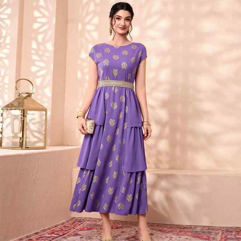 レディース 民族衣装 エスニック ワンピース エレガント アラビア ドバイ 夏 半袖 ブロンズ 布 紫 ドレス