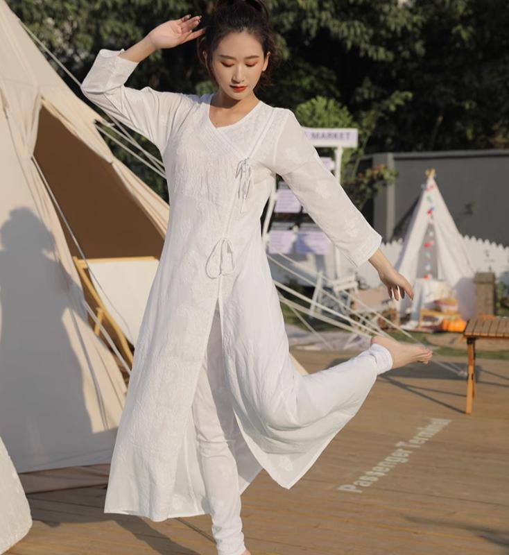 インド ヨガ ウェア 瞑想 瞑想 マスター レディース 丈 綿 特徴 刺繍 薄手 クラシック エスニック プルオーバー 長袖 夏 トップス 民族
