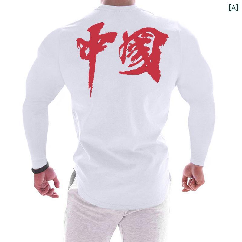メンズ マッスル Tシャツ 長袖 ヨガ 筋肉 中華風 スポーツ タイト 速乾 ランニング トレーニング フィットネス 服