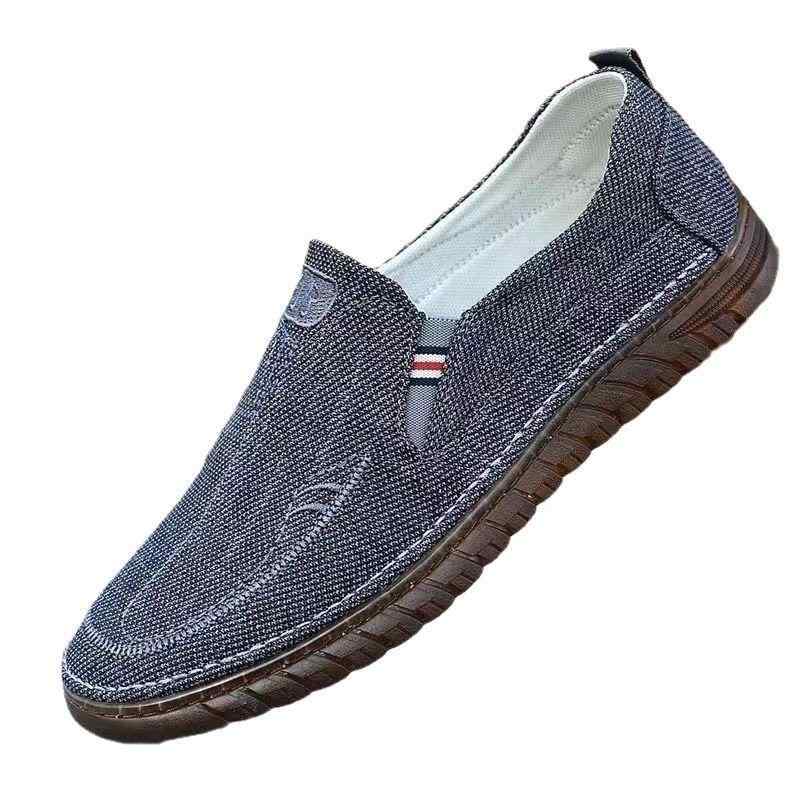 靴 メンズ 布靴 スリッポン 高齢者 介護シューズ リハビリシューズ フラット 牛筋底 飛織布 無地 ラウンドトゥ 紐なし ブラック グレー 春秋 普段使い 40代 50代 60代(x35)