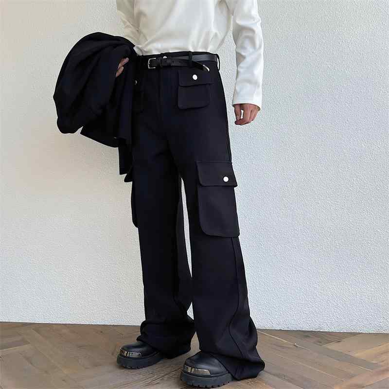 メンズ ファッション オシャレ カジュアル 男性 春秋 アメリカン レトロ オーバー オール 複数 ポケット 付いた ストレート レッグ パンツ す