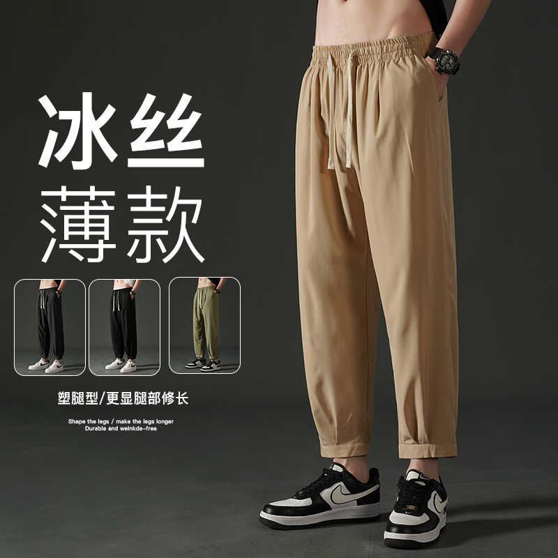 カジュアル パンツ スーツ スラックス 男性 用 冷感 サマー ドレープ ハイエンド レースアップ ストレート レッグ 韓国 九分丈