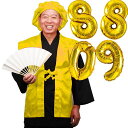 セット内容:大黒頭巾、黄のちゃんちゃんこ、末広(扇子)、栞、化粧箱の計5点。(弊店のストアーでは、バルーン付/バルーン無しの3種類の商品があります、必ずご確認の上、ご購入をお願い致します。) サイズ:ちゃんちゃんこ:フリーサイズ(着丈:約74cm身幅:約60cm肩幅:約54cm紐:約28cm)/帽子:フリーサイズ(幅:約34cm)/扇子:高さ:約28cm.男女兼用・どなたでも着用いただきやすいフリーサイズで、ご夫婦で代わるご着用いただくことも可能です。紐でサイズ調整をしてください。 品質:頭巾、ちゃんちゃんこ:ポリエステル100%。扇子:竹、和紙。ちゃんちゃんこと頭巾の生地に、縁起のよい「鶴」と「亀甲文」の文様が入っており、上品な光沢感と共に、高級感あふれる仕上がりです。扇子は縁起の良い末広がりの白扇子です。簡単にご説明いたしました「御祝いの栞」も同封いたします。 用途:豪華な化粧箱に入ってお届けいたしますので、プレゼントに最適です。還暦祝いの時の記念写真撮影用にピッタリな基本セットです。