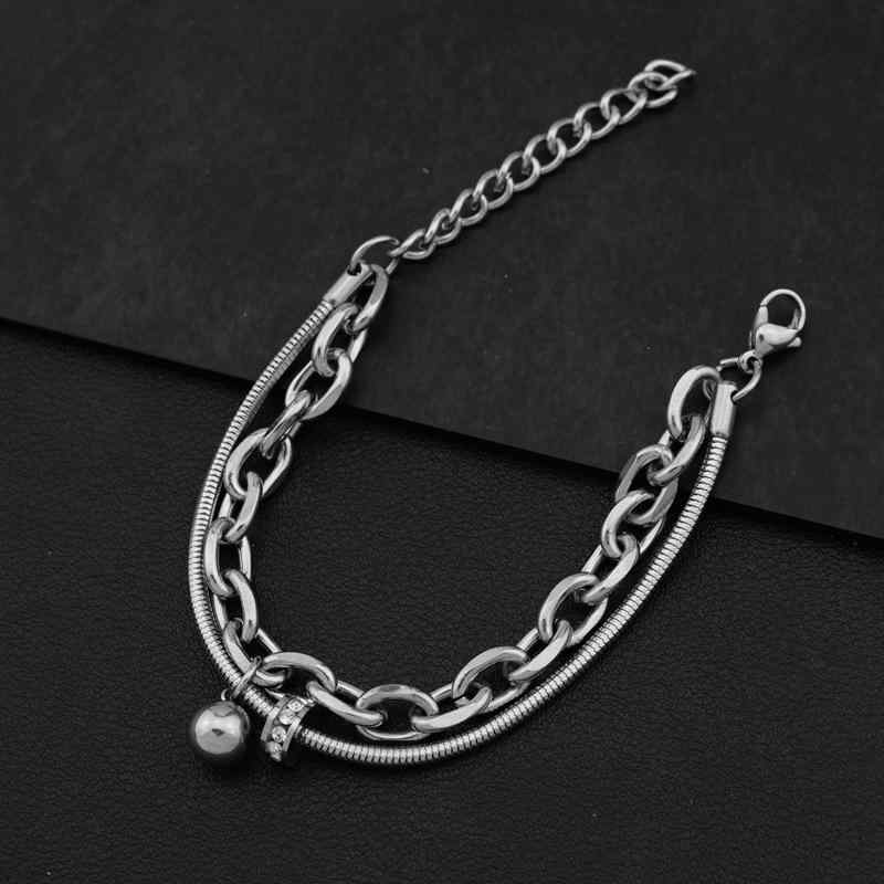 ブレスレット メンズ レディース チタン鋼製 キューバチェーン ジルコニアボール付き クール 豪華 幾何学模様 手作りアクセサリー 男女兼用 ユニセックス プレゼント ギフト