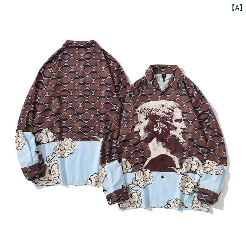 シャツ メンズ レディース ユニセックス 男女兼用 カップル 長袖 香港風 ストリート系 レトロ ヴィンテージ 花柄 総柄 プリントシャツ ゆったり オーバーサイズ ビッグシルエット トップス ポリエステル 普段使い カジュアル 秋冬