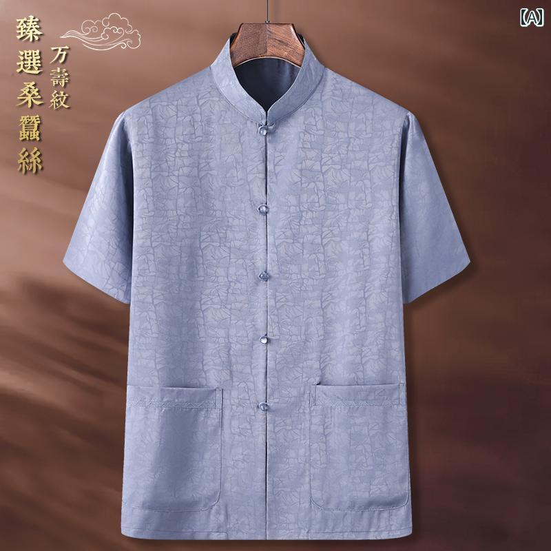 メンズ 夏 カンフー服 トップス シャツ 中華風 唐 スーツ 半袖 お父さん 薄手 老人 おじいちゃん 服