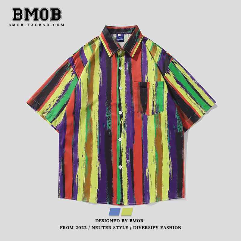 シャツ ジャケット メンズ 夏 レインボーストライプ 半袖 花柄 カジュアル リゾート グラフィティ