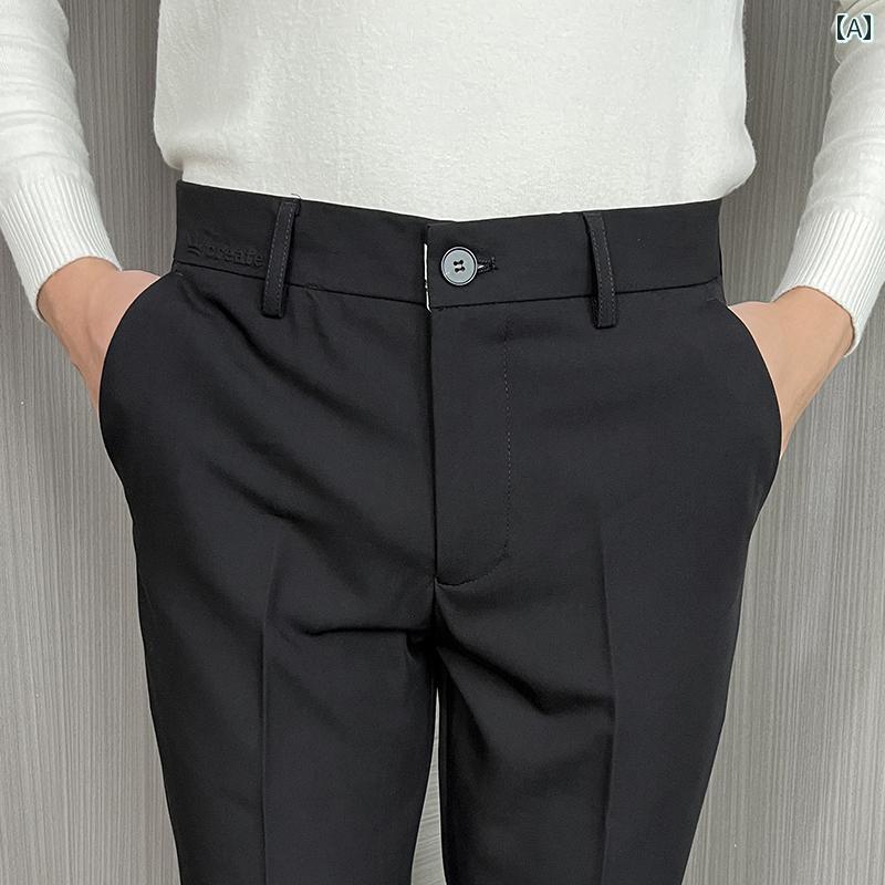 パンツ スラックス メンズ 春秋 黒 ストレート レッグ フォーマルスーツ ドレープ 高級感 スリム ビジネス カジュアル ノンアイロン ストレッチパンツ