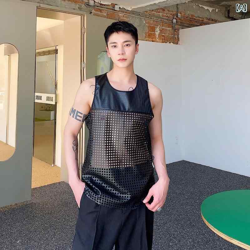 メンズ レディース 夏 穴 小さい 正方形 チェック柄 レザーベスト オートバイ パンク ロック ナイトクラブ ステージ 衣装 チョッキ