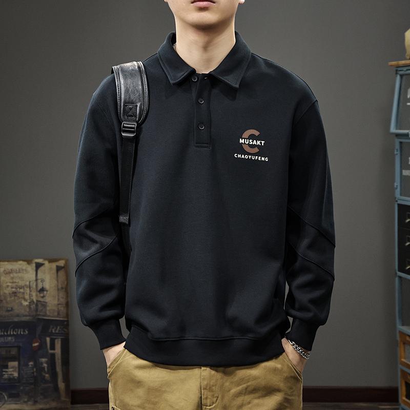 秋冬 コーデ メンズ 服 シンプル ファッション オシャレ 大人 かっこいい 大きいサイズ ストリート 紳士服 アメリカン レトロ 350 グラム ヘビー 長袖 ポロ シャツ ハイエンド プリント T シャツ