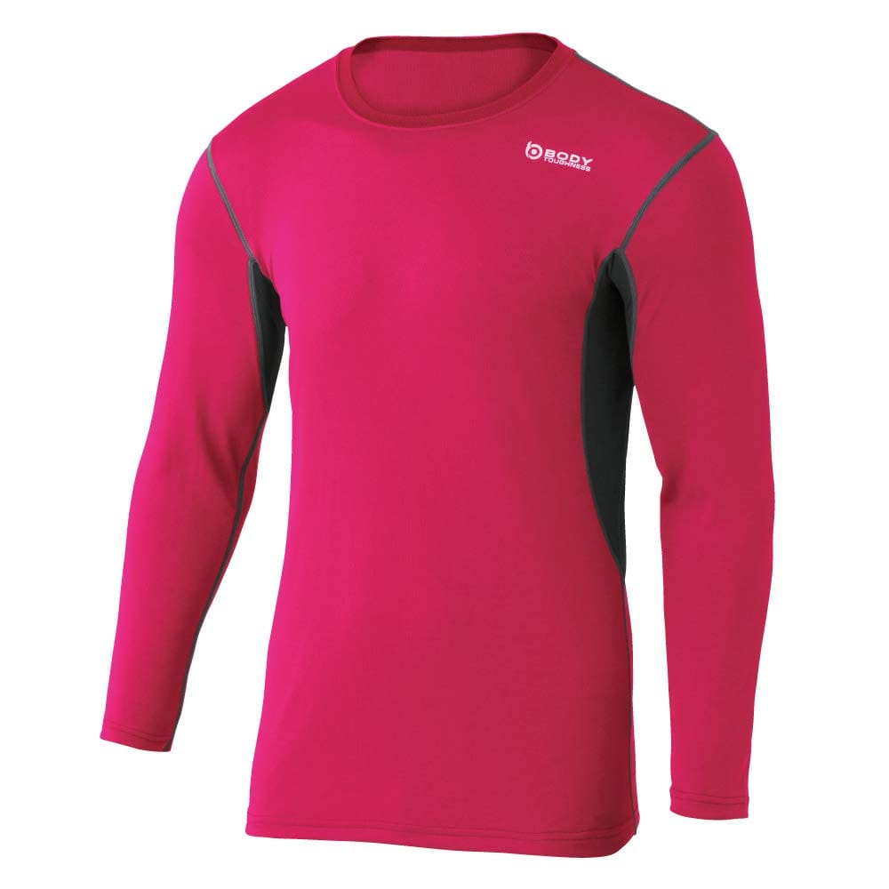 おたふく手袋(Otafuku Glove) 夏用インナー 長袖 丸首 デュアルメッシュ [吸汗速乾 消臭 メッシュ ストレッチ メンズ] JW-602 マゼンタxグレー S