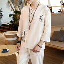 Tシャツ メンズ 半袖 チャイナカラー チャイナシャツ 綿麻混紡 薄手 ゆったり ルーズフィット ビッグシルエット 大きいサイズ 体型カバー 春夏 カジュアル 通気性 速乾