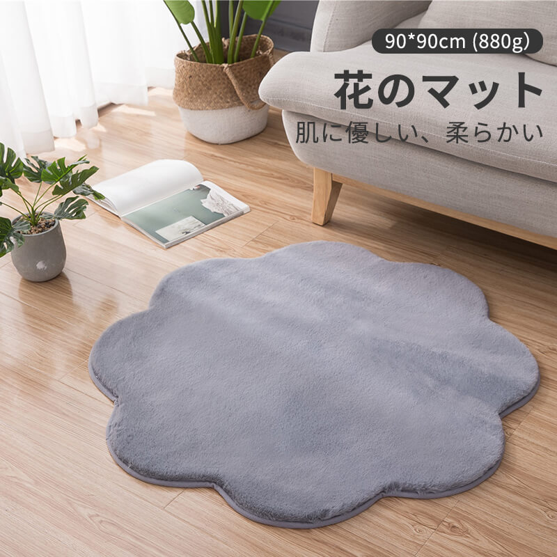 お買い物マラソン【P5倍】ラグ シャギー 90*90cm 花の形 カーペット 無地 シンプル ベージュ コーヒー ピンク グリーン ロングパイル フロアマット プレイマット リビング マット 椅子下 デスク下