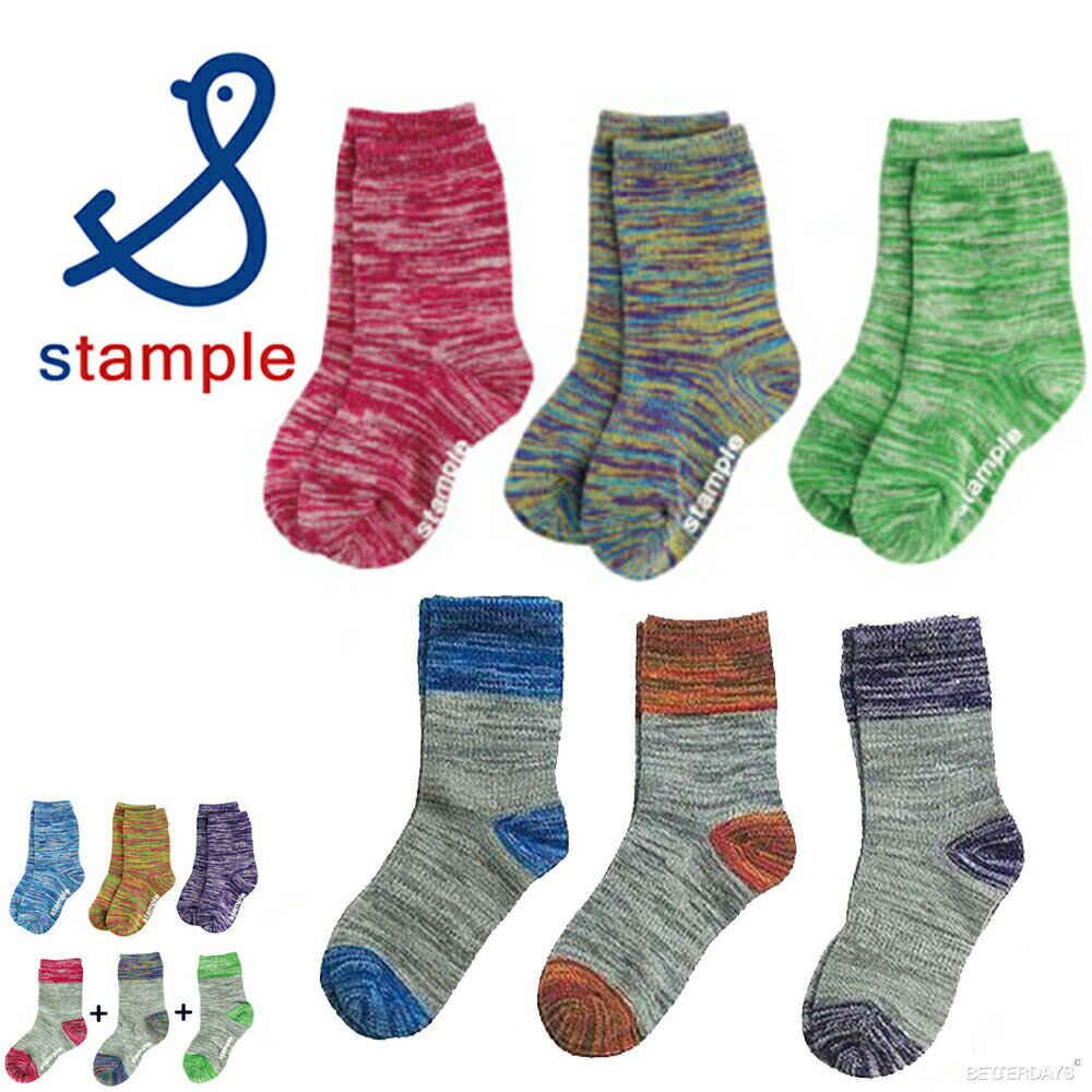 靴下 キッズ スタンプル Stample フローズン切り替え クルーソックス 3P 3足セット 男の子 女の子 子供 保育所 幼稚園 小学生 ベビー ブルー オレンジ パープル 10-21cm 71052 71053